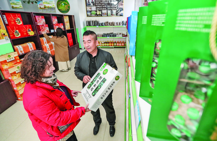 11月14日,夏县消费帮扶供销超市内,顾客在选购土特产。 据了解,该超市集中当地蜂蜜、黑木耳、空心挂面等绿色、生态、优质的名优特产品100余种,组织专业团队进行产销对接,持续开拓消费市场,破解农产品“卖难”瓶颈,进一步助推消费帮扶,为乡村振兴注入强劲动力。