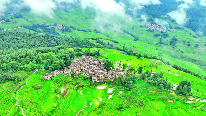 阿者科村位于云南省红河哈尼族彝族自治州元阳县,坐落于世界文化遗产哈尼梯田核心区。当地村民以梯田、房屋、生产生活方式等资源入股,走出一条全民共建共享的旅游发展之路。