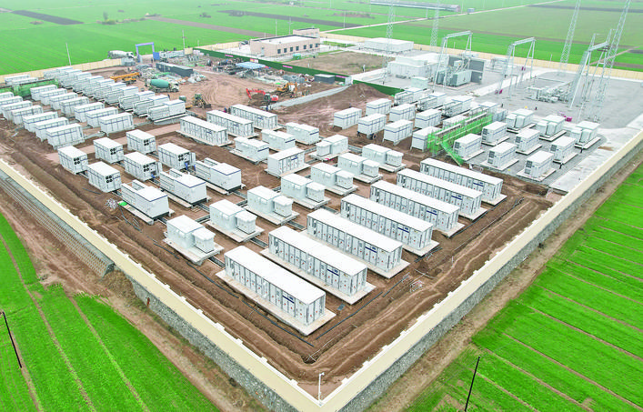 11月15日,工人在位于河北省衡水市故城县军屯镇境内的百兆瓦级独立储能电站建设工地施工。 据国网衡水供电公司介绍,目前该市在建的7座独立储能电站设计总装机容量1400兆瓦,储能电站全部竣工并网投运后,将通过储能设备削峰填谷,提升区域电网内的风电、光伏等新能源电能消纳能力,助力区域经济绿色低碳发展。 新华社记者 杨世尧 摄