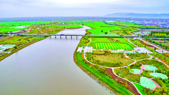 ▲新绛县汾河生态公园美景(11月16日无人机拍摄)。 新绛县牢固树立绿色发展理念,通过河水整治、生态修复等措施,不断加大汾河流域(新绛段)生态保护力度,努力把汾河打造成自然景观与人文景观交相辉映的水利长廊、生态长廊、文旅长廊,实现水清河畅、岸绿景美。