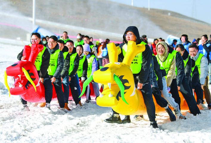 11月16日,游客在乌兰察布市大河湾滑雪场参加趣味冰雪运动。 当日,2024年内蒙古乌兰察布第二届“冰雪之恋”旅游季开幕。本届旅游季为期5个月,当地围绕“观星赏月游火山,冰雪美食泡温泉”等旅游资源,推出多条旅游线路,吸引游客前来感受乌兰察布的冬日浪漫风情。 新华社发(王 正 摄)