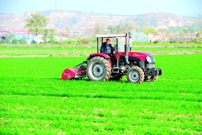 11月20日,万荣县荣河镇金井村的麦田里,村民驾驶着农机进行“碾麦”作业。 立冬时节,小麦进入了越冬期,也是田管的关键时期。当地农民对小麦进行碾压,此举不仅可以提高土壤的紧密度,减少水分蒸发,还能增强小麦的抗寒能力,为来年小麦丰收奠定坚实基础。 特约摄影 张怀心 摄