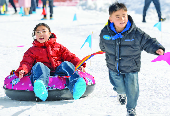 12月15日,小朋友在湖北省宜昌市秭归县屈原故里国际滑雪场玩耍。 进入冬季,三峡地区各大高山滑雪场陆续开门迎客,吸引众多游客参与到冰雪运动中,尽享冬日乐趣。 新华社发(郑家裕 摄)
