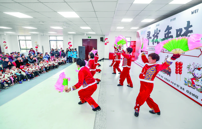 12月27日,东白湖镇村民在“村晚”舞台上进行扇子舞表演。 新年临近,浙江省诸暨市东白湖镇陈蔡社区家宴中心举办“好美诸暨 好戏连台”我们的村晚暨“寻找年味”非遗民俗系列活动。 近年来,诸暨市东白湖镇通过开展“我们的节日”“文化走亲”“电影下乡”等文化惠民活动,丰富乡村百姓精神文化生活,增强基层群众的获得感、幸福感。 新华社记者 徐 昱 摄
