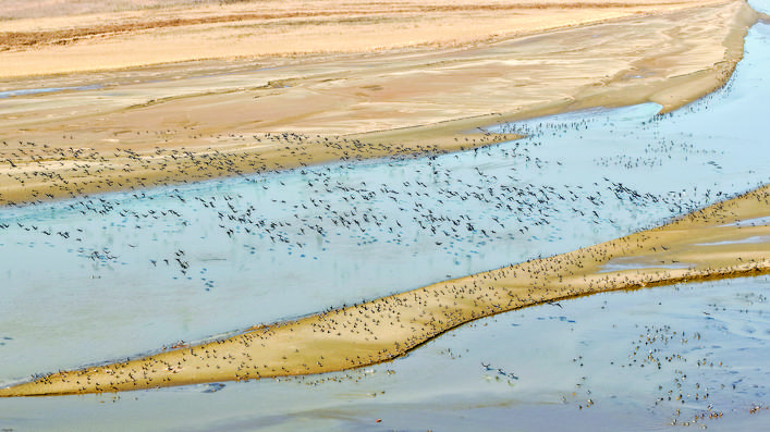 1月2日,黄河永济段河道上,群鸟翔集,十分壮观。近年来,我市持续推动黄河流域生态保护和高质量发展,不断加强黄河湿地生态保护与修复,黄河湿地恢复面积逐步增加,生态系统多样性不断提升,形成富有明显特色的四季景致。