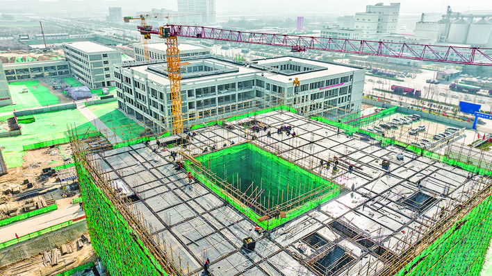 ▶1月5日,闻喜县职业教育提档升级新建项目一期工程施工现场,工人们在紧张施工。 据了解,该项目规划占地面积约12.08公顷,分为两期进行。一期工程包括教研中心、工科实训用房、实操用房、食堂及3幢宿舍楼等建筑,二期工程包括文科实训用房、礼堂、风雨操场及相关基础设施。
