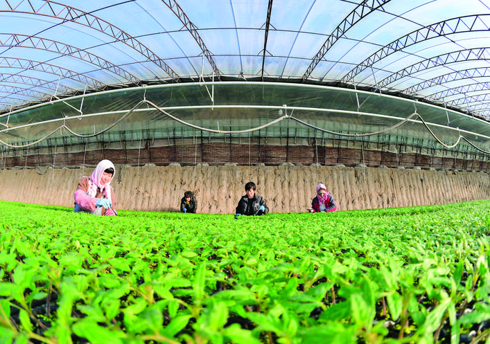 1月5日,河北省唐山市曹妃甸区第六农场曾家湾三村的农民在育苗棚内管护西红柿秧苗。近日,曹妃甸区的农民抢抓农时,开展蔬菜、瓜果幼苗培育工作,为农业生产和种苗市场提供保障。 新华社记者 杨世尧 摄