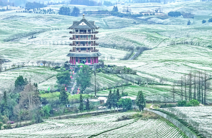 ▲这是雪后的湄潭茶海景区(1月9日摄)。当日,位于贵州省遵义市湄潭县的万亩茶海迎来降雪,茶园被白雪覆盖,别有韵味。 新华社记者 刘 续 摄