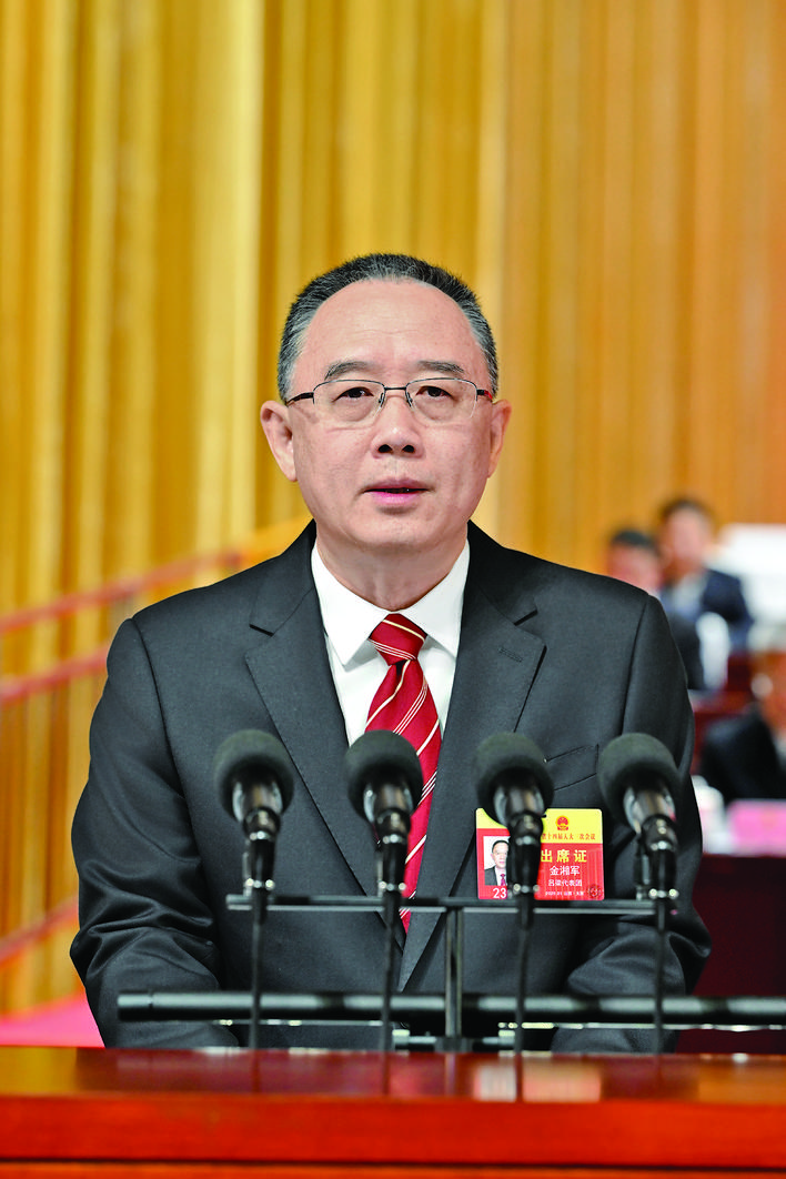 根据会议议程,金湘军代表省人民政府向大会作政府工作报告。报告共分三个部分:一、2024年工作回顾;二、2025年工作安排;三、全面提升政府治理效能。