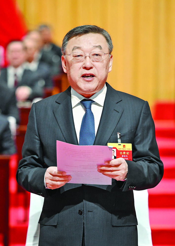 金湘军作政府工作报告。山西日报记者 阮 洋 摄