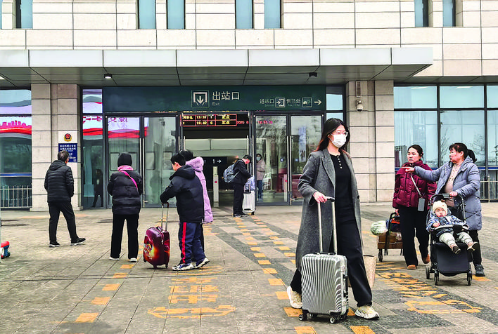 1月23日上午,旅客从运城北站出口回家。春运期间,运城北站预计发送旅客50万人次。
