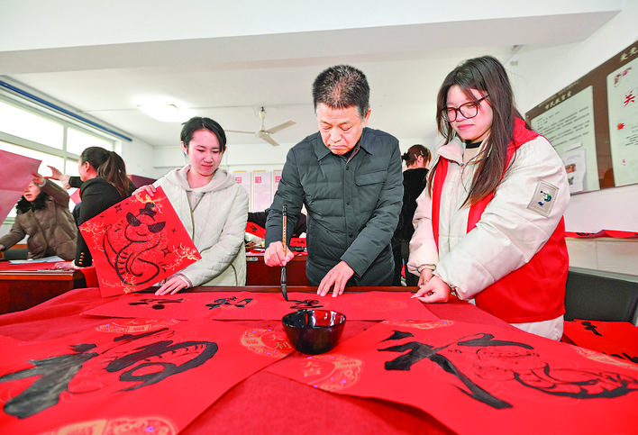 ▲1月17日,盐湖区东城街道名邸社区开展“翰墨飘香迎新春 福满名邸送吉祥”文化惠民活动。辖区书法爱好者为居民书写春联和“福”字,为即将到来的新春佳节增添了喜庆氛围。