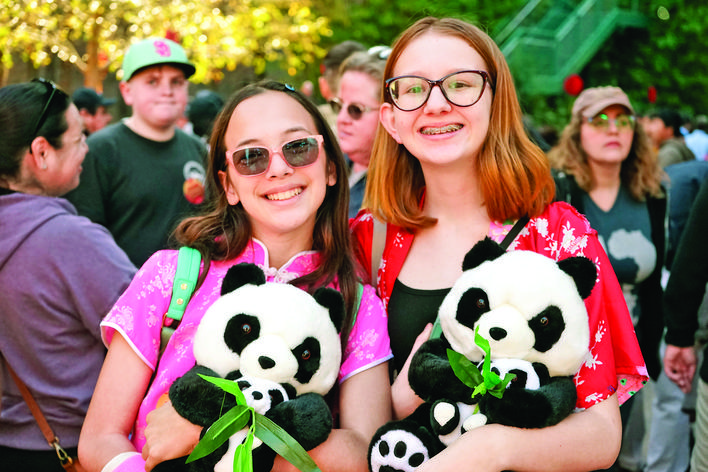 2月2日,在美国圣迭戈动物园举办的农历新年庆祝活动上,参加者抱着玩具熊猫留影。 新华社发(曾 慧 摄)