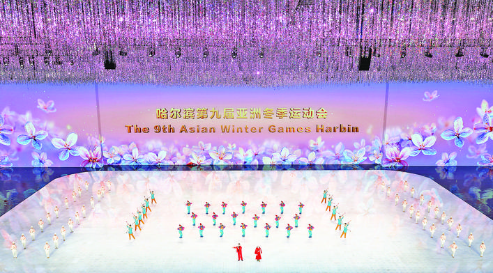 “雪花穹顶”映照下,正月初十的哈尔滨国际会展体育中心,格外璀璨。第九届亚洲冬季运动会开幕式正在这里举行。