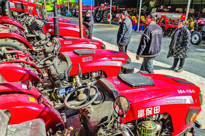▼2月8日,农户在盐湖区一家农机销售市场选购农机设备。特约摄影 姜 桦 摄