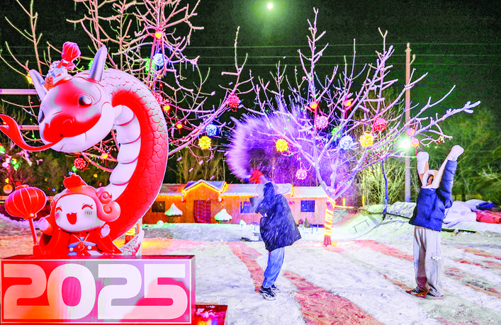 据宁峰介绍,农历正月初一至正月十五,“古城雪乡”每天都有东北二人转等表演供游客观赏,还会推出杂技表演、打铁花、篝火晚会,引进非遗表演等等,以冰雪经济点燃浓浓年味,从而打造新的消费热点,带动冰雪旅游发展。