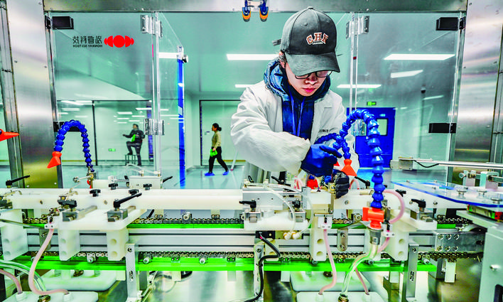 石药银湖制药有限公司新建生产线自动化升级改造项目,一名工作人员在调试设备。 本栏图片均由本报记者 陈方斌 摄