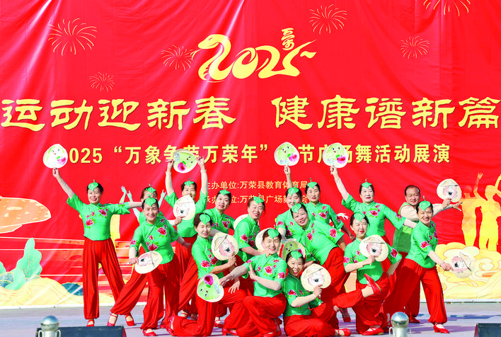 ▲2月9日,以“运动迎新春 健康谱新篇”为主题的大型广场舞展演在万荣县笑话广场举办。