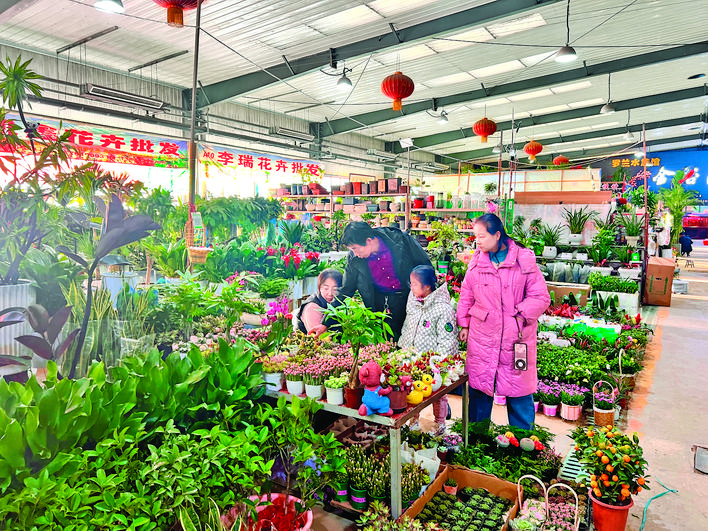 ▼2月8日,随着元宵节临近,市民在中心城区一家花卉市场内欣赏、购买鲜花。