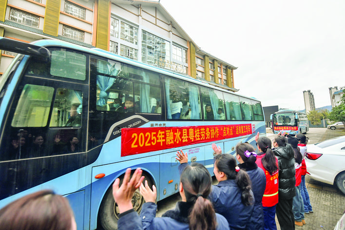 融水县务工人员乘坐赴粤专车返岗工作(2月7日摄)。 连日来,广西柳州市融水苗族自治县和对口帮扶的广东省廉江市依托粤桂劳务协作机制,通过“点对点”劳务输出服务、专场招聘会、直播带岗等多种举措,加大就业帮扶力度,不断拓宽就业渠道,帮助务工人员陆续赴粤返岗工作。 新华社记者 黄孝邦 摄