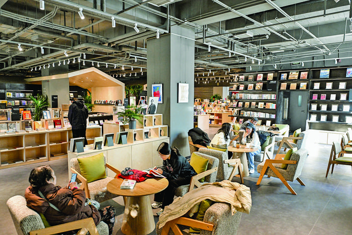 2月9日,读者在北京市朝阳区图书馆劲松馆一层的饮品简餐区域阅读、休闲。 历时50余天的升级改造,朝阳区图书馆劲松馆近日恢复对外开放。此次升级改造新增开放面积近600平方米。除了传统的借阅服务,图书馆还通过引入社会化运营、与社会机构合作等方式,增加饮品简餐、文创展示、活动展览等服务,尝试从传统“书籍借阅之地”到多元化“城市文化会客厅”的转变。 新华社记者 陈钟昊 摄