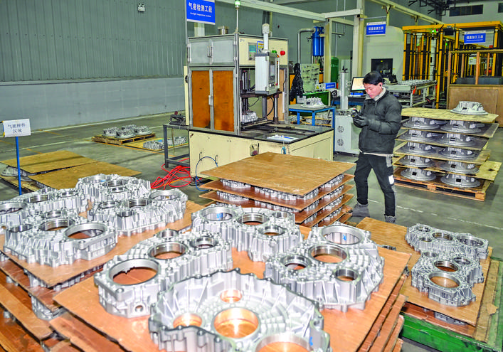 2月10日,山西华恩实业有限公司生产车间内,工人在紧张生产。