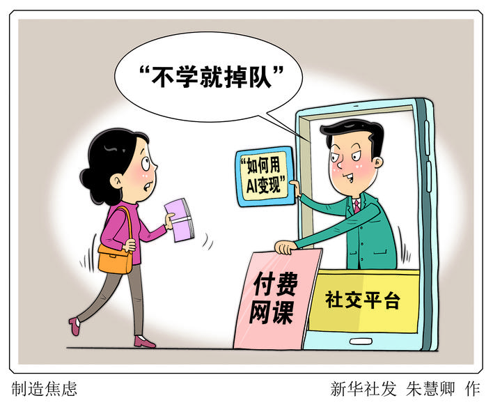 制造焦虑(漫画) 新华社发 朱慧卿 作