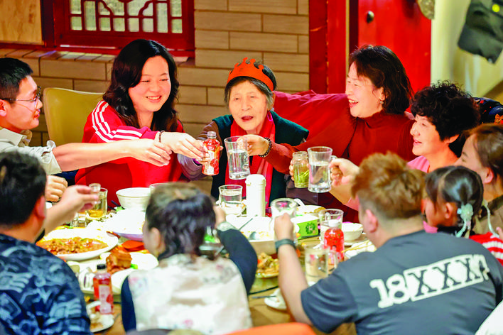 1月28日,在甘肃省兰州市西固区一家饭店,市民在吃年夜饭。 新华社记者 陈 斌 摄