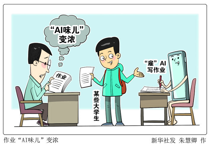 一线教学中的感受也很明显。“AI生成的作业就像开水煮白菜,内容空泛、千篇一律,‘一眼假’。”北京一所理工类高校教师马骁(化名)说,这几年,学生作业中的AI趋向更突出,很多时候变成“老师出题,AI答题”。一些学生作业全无独立思考,生成内容直接使用,一旦问起来写的是什么,自己都不理解。