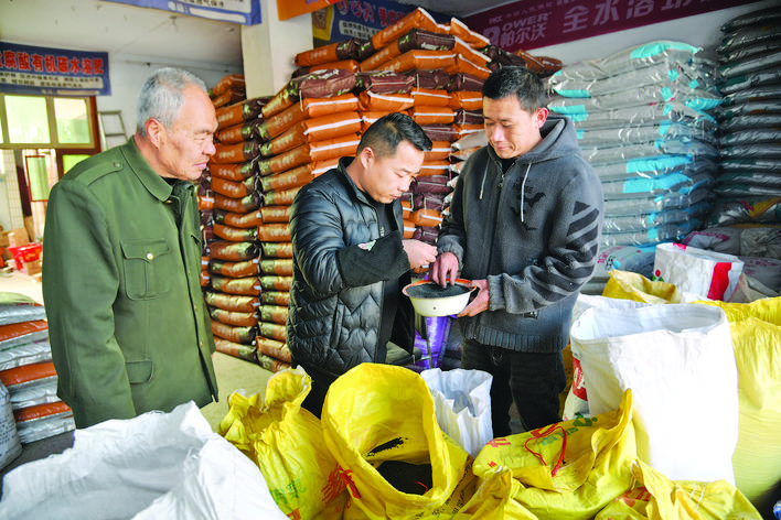 ▶2月14日,农民在闻喜县河底镇一家农资超市选购玉米种子和化肥。 目前,闻喜县109家农资经营店持续调运库储种子、化肥,以满足农民春耕生产需求。