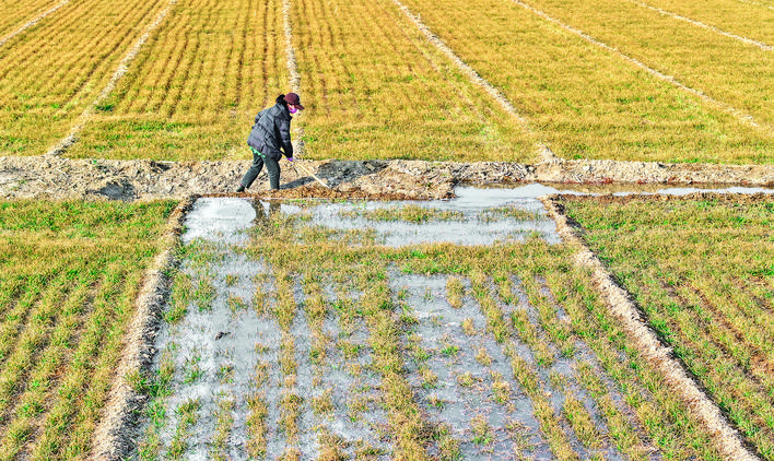 2月17日,稷山县稷峰镇姚家庄村村民在浇灌麦田。 稷山县农民抓住麦苗返青的有利时机,加大小麦春管力度,积极为麦田浇水、施肥,确保全县2.4万公顷小麦顺利返青,为今年丰产丰收奠定基础。