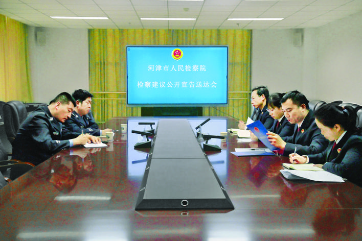 图① 河津市人民检察院向该市司法局送达社区矫正检察建议书,并对具体内容进行说明。