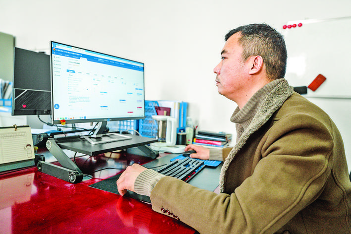 图② 张荣旗登录全国检察机关大数据模型管理平台向记者介绍、展示“社区矫正检察监督模型”。
