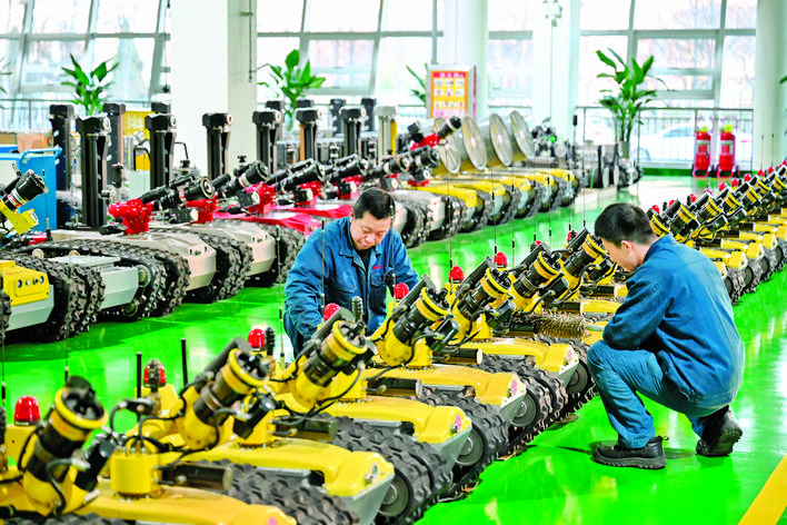 2月18日,工人在唐山国家高新技术产业开发区中信重工开诚智能装备有限公司车间内保养机器人产品。 近年来,河北省唐山市将加快机器人产业发展作为新型工业化基地建设和打造高端装备制造产业的重要抓手,不断加大科技投入和创新研发力度,拓展机器人应用场景,推动机器人产业集群持续壮大。目前,唐山市拥有机器人相关企业222家,省级以上机器人研发机构21家,焊接机器人、特种检测机器人、抢险救援机器人等产品畅销国内并远销海外。 新华社记者 牟 宇 摄