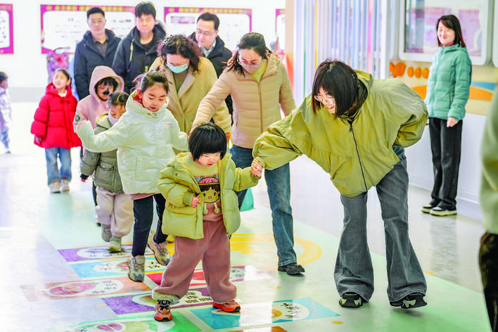 ▶市直机关幼儿园开展“跳房子”新学期入园成长游戏活动。