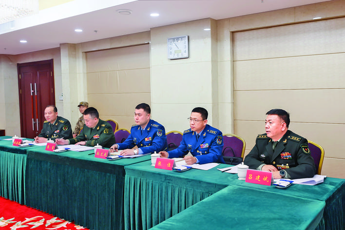 2月24日,参加市五届人大五次会议的解放军和武警部队代表团代表审议政府工作报告。 本报记者