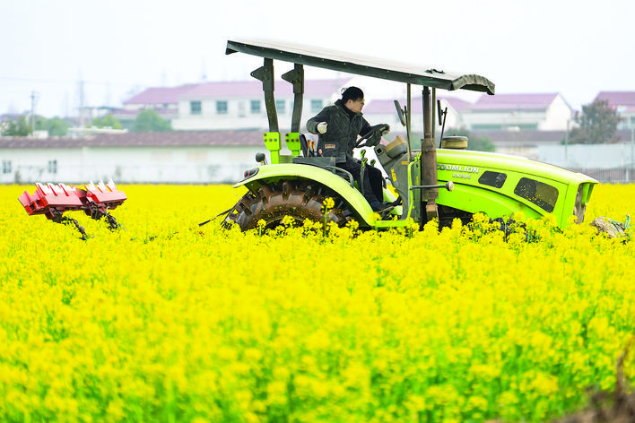 2月25日,在沅江市草尾镇乐园村,村民操作旋耕机翻耕芥兰绿肥。 近日,湖南省益阳市沅江市草尾镇村民趁着天气晴好,抢抓农时翻耕芥兰绿肥。据了解,黄花芥兰采摘完一茬菜心后,剩余部分留在田里作为绿肥,可为土地提供丰富的养分,减少化肥使用量,提升土壤肥力。 近年来,沅江市依据当地气候特点不断优化种植结构,积极探索“稻稻菜”轮作模式,充分利用土地空闲期发展秋冬蔬菜种植,促进农民增收、粮食增产提质。 新华社记者 陈思汗 摄