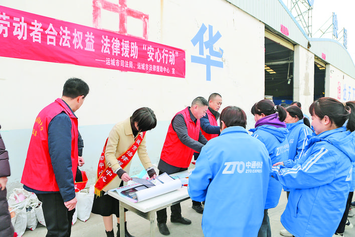 图① 市法律援助中心工作人员深入快递公司进行法治宣传。