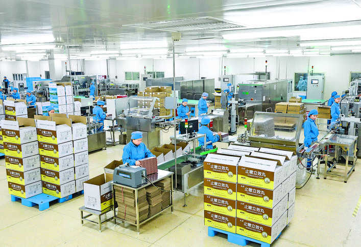 2月26日,在万荣县山西华康药业股份有限公司中成药精制丸自动化生产线上,工人们在生产“山西精品”中成药——止嗽立效丸。