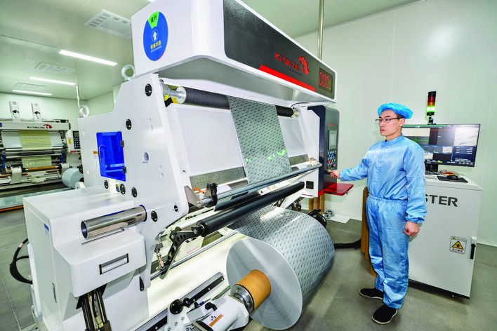 ▼2月28日,盐湖区国森彩印有限公司的生产车间,工人在生产药用复合膜。 近年来,盐湖区充分利用自身资源优势,着力将资源优势转化为高新材料、高端装备优势,以高新材料升级高端制造,用新技术升级传统产业,切实推动高新材料产业高端化、智能化、绿色化。