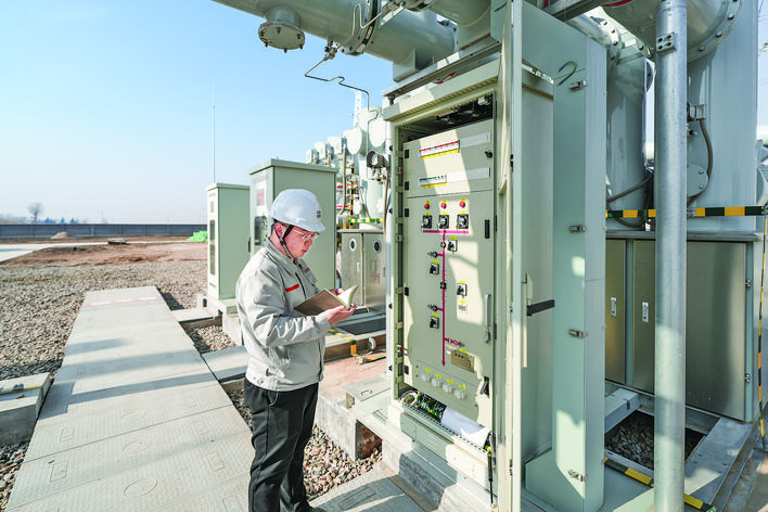 近日,夏县100MW储能光伏发电项目运行现场,一名工作人员在记录设备运行情况,确保系统高效稳定运行。