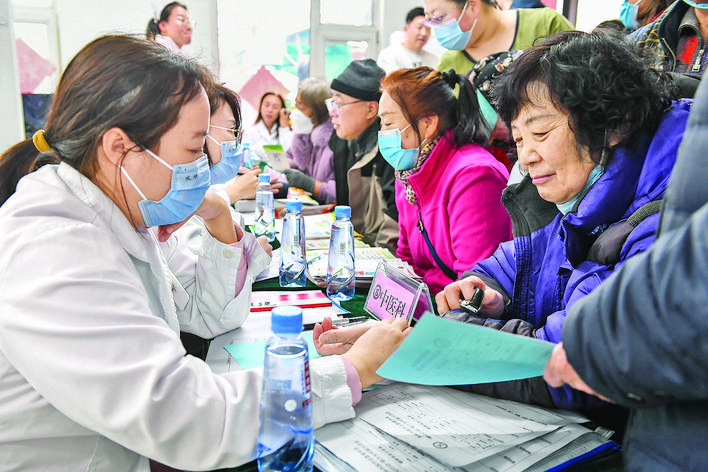 3月4日,在吉林省吉林市田园社区,吉林市医疗志愿者协会志愿者为居民检查身体。 吉林市医疗志愿者协会现有注册志愿者超过一万名,成立十二年间,志愿者们用实际行动努力践行雷锋精神。 新华社记者 张 楠 摄