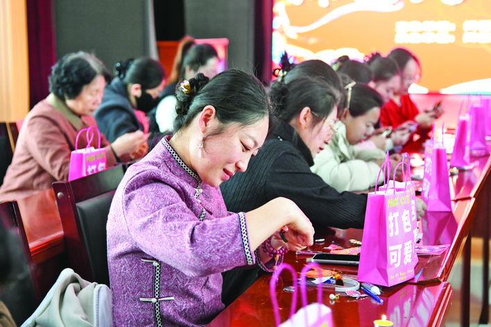 3月5日,“三八”国际妇女节前夕,闻喜县举办“锦色芳华 宋韵流芳”非遗宋锦手作活动,50多名妇女共同制作宋锦压襟挂件,感受非遗魅力。