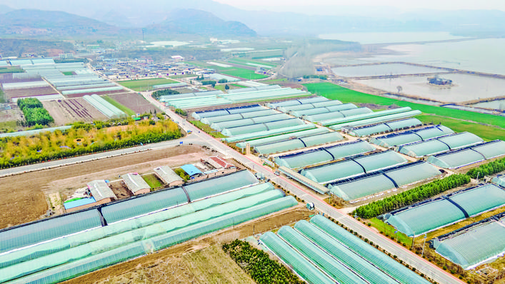 位于黄河岸畔的平陆县现代农业园区里,农业大棚集中连片,蔚为壮观(3月5日摄)。