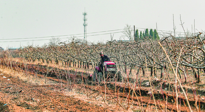 3月10日,临猗县三管镇东姚庄村村民在桃树地里劳作。 近年来,东姚庄村村“两委”积极引导群众调整农业种植结构,因地制宜大力发展苹果、桃、梨等特色农产品种植,带动村民增收。 本报记者 金玉敏 摄