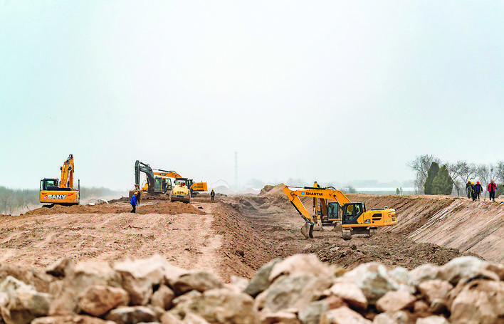 3月13日,姚暹渠(永济段)改造工程施工现场机械轰鸣,施工人员全力奋战,推进泄洪排涝工程改造。