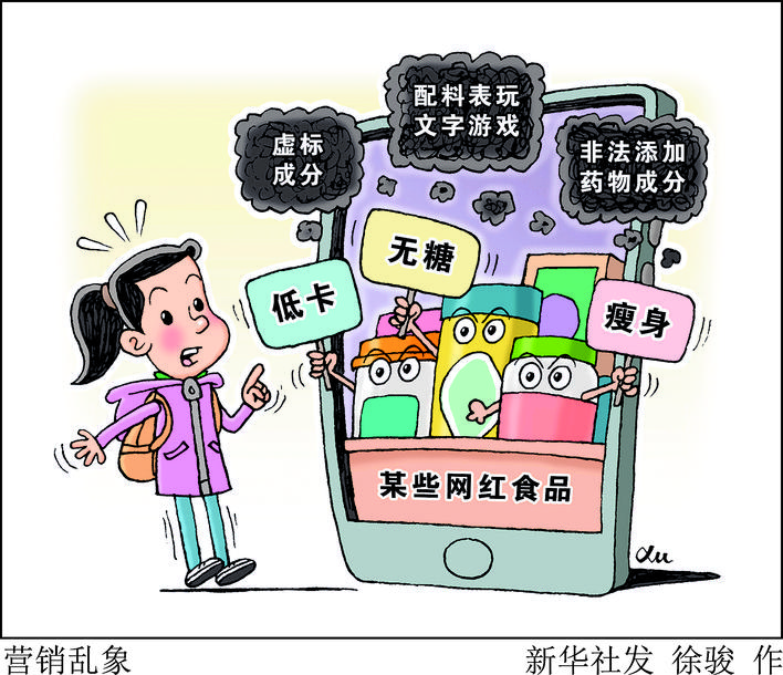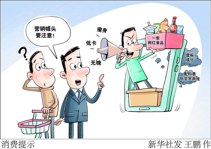 宣称“低卡、无糖、营养、瘦身”,近来一些网红食品打着健康卖点,迎合消费者心理,吸引了不少人跟风购买。但记者调查发现,一些网红食品虚标成分、配料表玩文字游戏,甚至非法添加药物成分实现所谓“减肥瘦身”等功效。消费者需擦亮眼睛,识别这些营销噱头和文字游戏,保护自身权益。