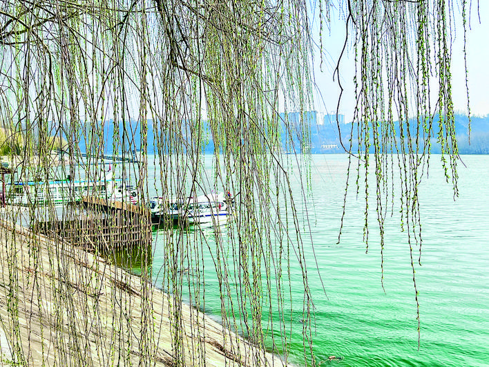 近日,平陆县黄河岸畔,垂柳发芽吐绿,河水碧波荡漾,春意盎然,景色宜人。 特约摄影 郝 健 摄