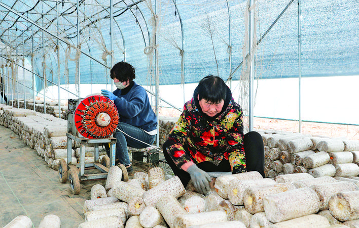 近日,工作人员在位于垣曲县皋落乡皋落村的福君食用菌产业园区为菌棒进行刺孔作业。