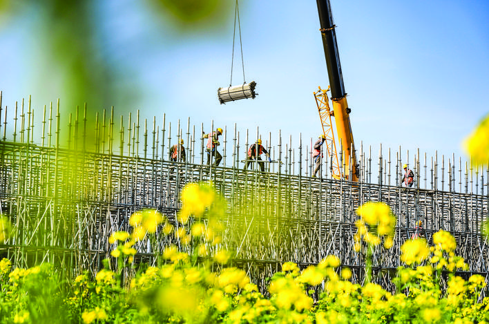 3月18日,中铁四局建设者在新建沪宁合高铁合肥枢纽建设现场施工。 春日时节,中铁四局新建沪宁合高铁合肥枢纽建设现场一派繁忙景象。施工人员抢抓春季有利天气,高标准高质量推进项目建设。 据悉,新建上海至南京至合肥高速铁路是国家中长期铁路网规划“八纵八横”中沿江通道的重要组成部分,是江北沿江城市与南京都市圈、上海都市圈快速直达的快捷通道。 新华社记者 刘军喜 摄